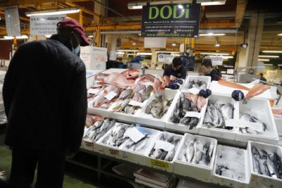 Fresh fish are seen at a fish market of the old port in Marseille, France, Sept. 6, 2021. (Xinhua/Gao Jing)