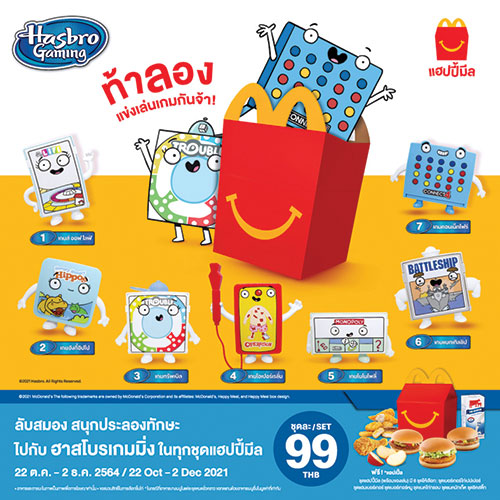 แมคโดนัลด์ ชวนชิมชุดแฮปปี้มีล กับของเล่นชุดใหม่ล่าสุด “ฮาสโบรเกมมิ่ง” ให้ลับสมองประลองทักษะ ทดสอบความสามารถถึง 7 เกม ถึง 2 ธ.ค. ที่ ร้านแมคโดนัลด์ ทุกสาขา โทร.1711