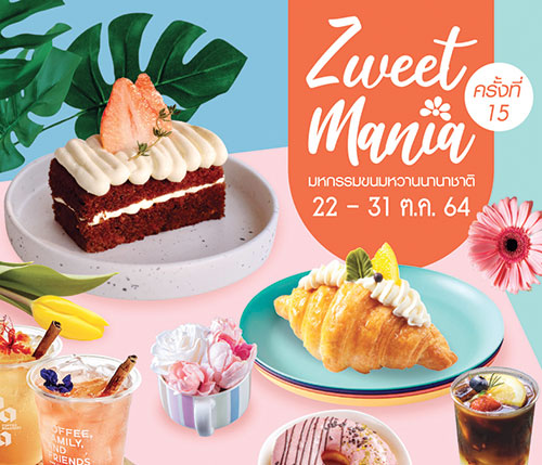 ชวนชิมขนมหวานนานาชาติ ในงาน “Zweet Mania” ขนมไทย, เค้ก, เบเกอรี่, ช็อกโกแลต, ครัวซองต์ จากกว่า 40 ร้านดัง ถึง 31 ต.ค. ที่ ศูนย์การค้าฟิวเจอร์พาร์คและสเปลล์ พาร์ค