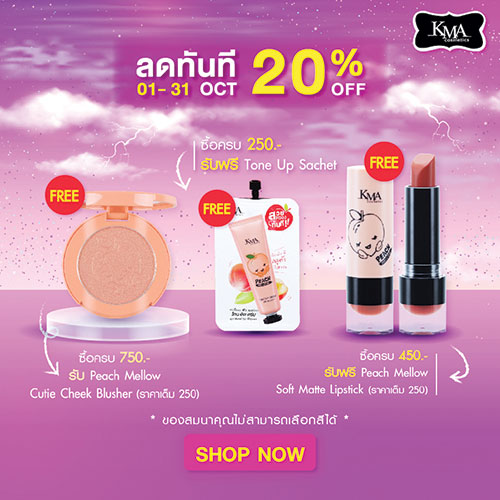KMA Cosmetics Thailand ชวนช็อปสินค้าในราคาลดทันที 20% และซื้อครบทุก 250 บาท, 450 บาท และ 750 บาท รับฟรีเครื่องสำอางคุณภาพชั้นนำตามเงื่อนไข ถึง 31 ต.ค. https://shop.kma-cosmetics.com