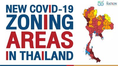 The 38 provinces classified under red zone, or high disease control area, are: Kanchanaburi, Khon Kaen, Chonburi, Chumphon, Chiang Rai, Chiang Mai, Chachoengsao, Trang, Trat, Nakhon Pathom, Nakhon Nayok, Nakhon Ratchasima, Nakhon Sawan, Nonthaburi, Pathum Thani, Prachuap Khiri Khan, Prachinburi, Ayutthaya, Phatthalung, Phichit, Phitsanulok, Phetchaburi, Phetchabun, Ranong, Rayong, Ratchaburi, Lopburi, Satun, Samut Prakan, Samut Songkhram, Samut Sakhon, Saraburi, Sa Kaew, Suphanburi, Surat Thani, Ang Thong, Udon Thani and Ubon Ratchathani.