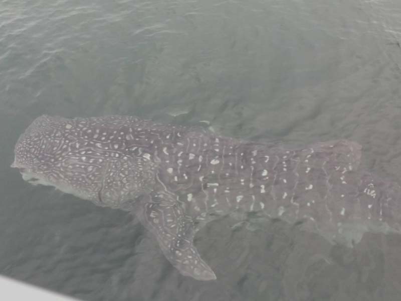 ด้านนางสาวทิวา ร่มรื่น สื่อมวลชนกระบี่ ที่ร่วมเดินทางไปกับคณะฯ กล่าวว่า สำหรับจุดที่เจอฉลามวาฬ อยู่บริเวณระหว่างอ่าวไร่เล และเกาะปอดะ มีฉลามวาฬประมาณ 3-4 ตัว มาว่ายวนเวียนอยู่รอบเรือ ในลักษณะที่เชื่องมาก สร้างความตื่นเต้นแก่คณะฯรวมถึง นทท.เที่ยว ที่อยู่บนเรือ ซึ่งความยาวของฉลามวาฬแต่ละตัวใหญ่มาก ไม่ต่ำกว่า 5 เมตร บางตัวยาวร่วม 10 เมตร. -008