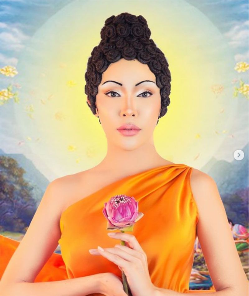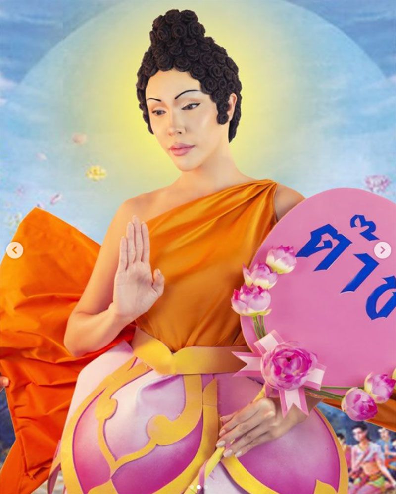 ซึ่งภายหลังจากที่มีการโพสต์ภาพก็เกิดดราม่าขึ้น เพราะหลายคนมองว่าไม่เหมาะสมที่จะแต่งตัวเลียนแบบพระพุทธเจ้า คนพุทธรับไม่ได้กับสิ่งนี้ เล่นกับความเชื่อของคนที่นับถือเสี่ยงตกนรก
