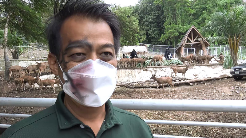 นายวันชัย ตันวัฒนะ ผู้อำนวยการสวนสัตว์สงขลา กล่าวว่า วันนี้สวนสัตว์สงขลาเราก็จัดกิจกรรมวันฮาโลวีน ร่วมสนุกกับสัตว์ป่าของเรา โดยเฉพาะได้นำโลงศพแบบฝรั่งและรูปผี มาประกอบในการที่จะให้อาหารกับสัตว์ และเขาก็จะมาร่วมสนุกกับเรา โดยเขาจะมาหาอาหารกินอยู่ตามปกติอยู่แล้ว เพื่อส่งเสริมสุขภาพชีวิตของเขา. 012