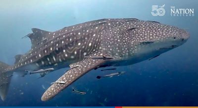 A four-metre-long whale shark showed up to welcome visitors at Koh Tao’s Chumphon Pinnacle as Surat Thani province opened its doors to foreign tourists on Monday. The shark, nicknamed “Phi Jood” (dotted brother), appeared to be greeting divers off the coast of the island.