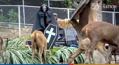 Songkhla Zoo jumped on the Halloween bandwagon by creating a spooky deer-feeding area complete with ghosts and coffins.