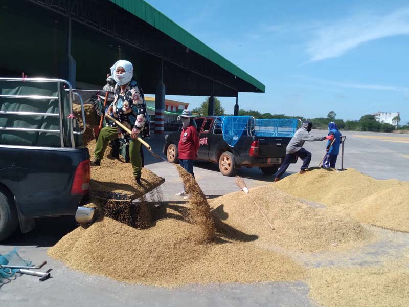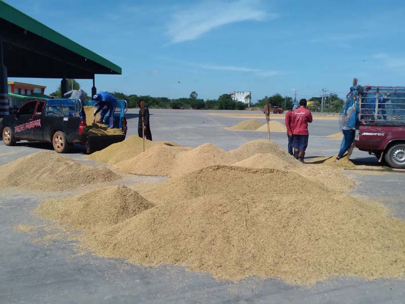 “สำหรับราคารับซื้อช่วงนี้ ซึ่งเป็นข้าวเกี่ยวสด โดยข้าวเหนียว กข. 22 สด ก.ก.ละ 5.50 – 6 บาท แห้ง 7.80 – 8 บาท ขณะที่ข้าวเจ้า กข. 15 สด 8 -8.50 บาท แห้ง 10.50 -11 บาท ทั้งนี้ ราคารับซื้อข้างเปลือกนาปีที่จะถึงนี้ยังไม่เผยออกมา เนื่องจากยังไม่มีผลผลิตออกมา แต่คาดว่าราคาจะลดลงกว่าปีที่ผ่านมาอีกตันละ 1,000 บาท ซึ่งเป็นผลกระทบจากการเกิดสถานการณ์โรคิดเชื้อโควิด-19 เช่น สถานประกอบการ ธุรกิจการท่องเที่ยว ร้านอาหาร ปิดกิจการ ความต้องการใช้ข้าวลดลง จึงส่งผลให้ราคารับซื้อข้าวเปลือกยังต่ำอยู่” นายธนาพลกล่าว. -008