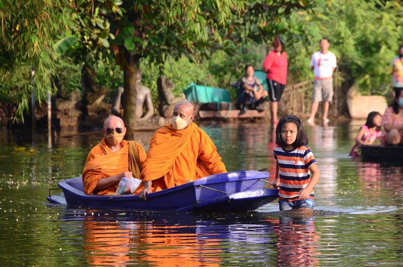ขณะที่ ด.ญ.แพรวา พิมพ์สีคร้าม อายุ 10 ขวบ เปิดเผยว่ารับจ้างเข็นเรือมาประมาณ 1 เดือน เพื่อหารายได้ไปเรียนหนังสือตอนเปิดเทอม รู้สึกสนุกมาก โดยมีเพื่อนๆอีก 3 คน มาเข็นด้วย อยากให้น้ำท่วมนานๆ จะได้มีรายได้ ช่วยเหลือครอบครัว ส่วนพระวรวุฒิ สุทัศโน พระวัดศรีโพธิ์ เปิดเผยว่าที่วัดน้ำไม่ท่วมอยู่ใกล้กับวัดพระงาม ซึ่งเป็นวัดร้าง มีประชาชนสนใจนิมนต์มาใส่บาตรตอนเช้าเป็นพระจำ ก็ต้องเดินลุยน้ำและนั่งเรือ เพื่อให้ญาติโยมใส่บาตรอย่างมีความสุข แลถถือว่าเป็นอันซีนของอยุธยาด้วย. -008