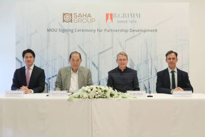 Saha Group led by Mr. Boonsithi Chokwatana, Chairman of Saha Group, and Mr. Vichai Kulsomphob, President of Saha Pathana Inter-holding Public Company Limited, signed an MOU with B.Grimm led by Dr. Harald Link, Chairman of B.Grimm, Ms. Caroline Link, President of B.Grimm Joint Venture Holding Company Limited, and Mr. Fabrice Goetschmann, President of B.Grimm Industrial Businesses. This strategic partnership will explore new business opportunities centered around industrial and real estate development, capitalizing on each party’s customer base to create synergy while sustainably supporting the local community and environment.