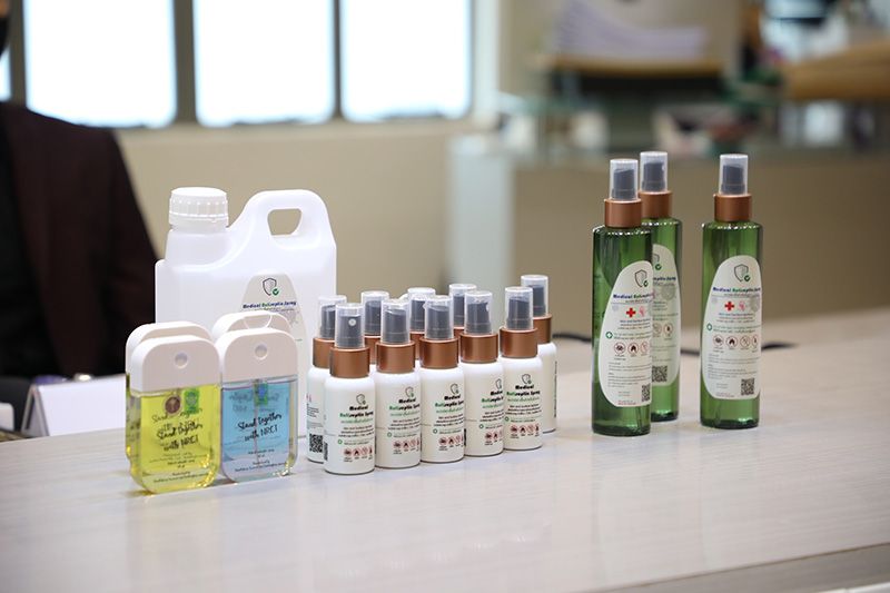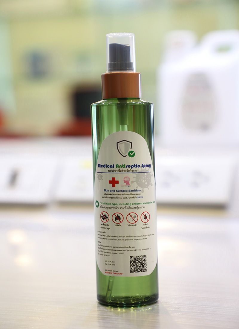 ผศ.ดร.นพ.อมรพันธุ์ เสรีมาศพันธุ์ ผู้อำนวยการศูนย์นวัตกรรมทางการแพทย์คณะแพทยศาสตร์ จุฬาลงกรณ์มหาวิทยาลัยในฐานะ หัวหน้าหน่วยวิจัย Nanomedicine Research Unit จุฬาลงกรณ์มหาวิทยาลัย พร้อมด้วย ผศ.ดร.โรจน์ฤทธิ์ โรจนธเนศ ภาควิชาเคมี คณะวิทยาศาสตร์ จุฬาลงกรณ์มหาวิทยาลัยและ สำนักงานการวิจัยแห่งชาติ (วช.) จับมือร่วมกันคิดค้นผลิตภัณฑ์นวัตกรรมน้ำยาฆ่าเชื้อจุลชีพก่อโรค Medical Antiseptic and Moisturizing Spray นวัตกรรมน้ำยาฆ่าเชื้อไวรัสและแบคทีเรีย