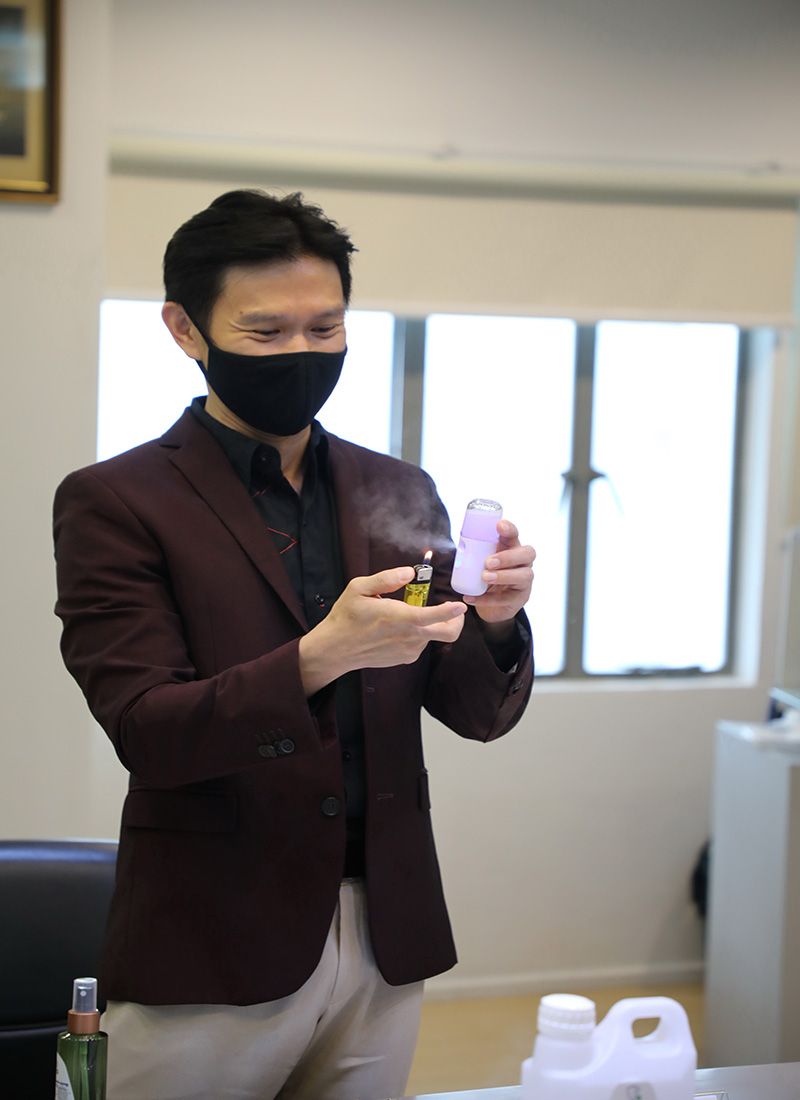 และจากผลการทดสอบการฆ่าเชื้อโควิด-19 พบว่า สามารถฆ่าเชื้อภายใน 1 นาที โดยโครงการการวิจัยนวัตกรรมนี้ ได้รับทุนสนับสนุนการวิจัยและพัฒนาสูตรน้ำยาฆ่าเชื้อจากสำนักงานการวิจัยแห่งชาติ (วช.) กระทรวงการอุดมศึกษา วิทยาศาสตร์ วิจัยและนวัตกรรม (อว.)