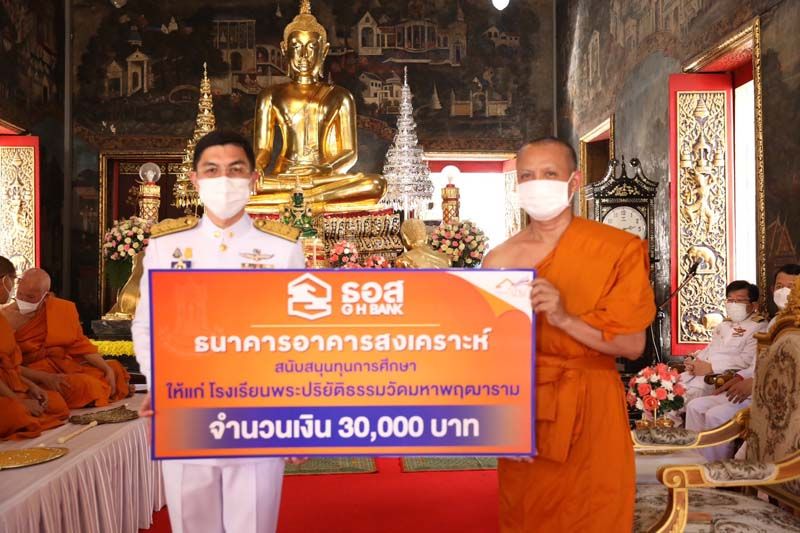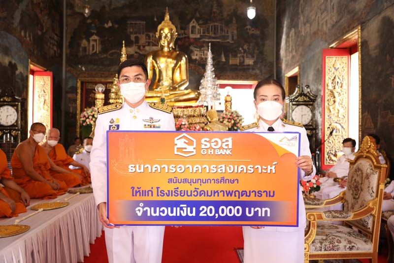 นอกจากนี้ ธนาคารยังมอบเงินสนับสนุนทุนการศึกษาเป็นจำนวนเงินรวมทั้งสิ้น 70,000 บาท ให้กับโรงเรียน 3 แห่ง ประกอบด้วย โรงเรียนวัดมหาพฤฒาราม โรงเรียนสตรีวัดมหาพฤฒาราม ในพระบรมราชินูปถัมภ์ และโรงเรียนพระปริยัติธรรมวัดมหาพฤฒาราม เพื่อช่วยเหลือเติมเต็มโอกาสทางการศึกษาให้แก่เยาวชนที่เรียนดีแต่ขาดแคลนทุนทรัพย์ โดยกิจกรรมดังกล่าวถือเป็นส่วนหนึ่งของนโยบายการแสดงความรับผิดชอบต่อสังคม (CSR) ของธนาคารในด้านการทำนุบำรุงพระพุทธศาสนา และการศึกษา โดยตลอดระยะเวลากว่า 68 ปี ธอส.ได้สร้างโอกาสให้คนไทยได้มีที่อยู่อาศัยเป็นของตนเองมาแล้วมากกว่า 3.7 ล้านครอบครัว พร้อมให้ความสำคัญกับการดำเนินกิจกรรม CSR เพื่อตอบแทนสังคม โดยคำนึงถึงการมีส่วนร่วมเพื่อสร้างความสัมพันธ์ที่ดีกับชุมชน และการปลูกฝังความเป็นจิตอาสาช่วยเหลือสังคมให้แก่บุคลากรในองค์กร เพื่อร่วมกันสร้างสังคมไทยให้มีคุณภาพชีวิตที่ดีและเติบโตอย่างยั่งยืน ทั้งนี้ การจัดพิธีดังกล่าวเป็นไปตามมติของมหาเถรสมาคม เรื่องการกำหนดมาตรการปฏิบัติในพิธีถวายผ้าพระกฐิน/กฐิน ตามมาตรการควบคุมและป้องกันการแพร่ระบาด ของโรคติดเชื้อไวรัสโคโรนา 2019 (COVID-19)