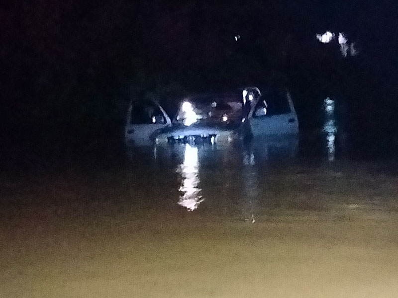 ระหว่างนั้นมีนายชาติชาย ชดช้อย อายุ 76 ปี อยู่บ้านเลขที่10/1 หมู่ 15 ต.บ้านลำนาว อ.บางขัน จ.นครศรีธรรมราช ขับรถกระบะยี่ห้อโตโยต้า ทะเบียน 6753 นครศรีธรรมราช มาตามถนนริมคลอง โดยขับฝ่ากระแสน้ำที่ไหลเชี่ยว ทันใดนั้นรถกระบะเกิดเสียการทรงตัว ถูกกระแสน้ำพัดตกริมคลอง โชคดีที่นายชาติชาย คนขับยังมีสติ สามารถหนีออกจากตัวรถได้สำเร็จ ส่วนรถกระบะถูกน้ำพัดติดริมคลอง