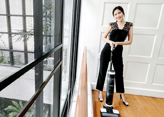 “โควิด-19 ทำชีวิตเปลี่ยนจริงๆ และบ้านก็เปลี่ยนสภาพกลายเป็นพื้นที่ทำงาน และตั้งแต่ Work from Home มารู้เลยว่า เวลาส่วนตัวถูกกลืนกินไปกับปริมาณงานที่เข้ามาอย่างต่อเนื่องจนทำให้เราละเลยในการดูแลตัวเอง เท่านั้นยังไม่พอ ยังเจียดเวลาได้ยากมากๆ ที่จะไปจัดการบ้าน ทำงานเสร็จก็เหนื่อยล้ามากแล้ว กลายเป็นว่าพอเราไม่ได้จัดการ บ้านก็กลายเป็นชนวนแห่งความเจ็บป่วยได้แบบไม่รู้ตัว โดยเฉพาะเจ้าฝุ่นละอองเล็กๆ ที่สร้างปัญหาใหญ่ ในฐานะตัวการสำคัญของโรคภูมิแพ้ และยิ่งช่วงเดือนพฤศจิกายนฝุ่นยิ่งมาแบบจัดเต็ม โดยเฉพาะฝุ่น PM2.5 ด้วยแล้ว พ่วงด้วยแพรเป็นคนเลี้ยงรักสัตว์ ก็มีเจ้าน้องหมาสุดน่ารักที่คอยผลัดขนอยู่บ่อยๆ ทำให้เราต้องให้ความสำคัญกับเรื่องฝุ่น เพื่อที่จะได้ลดโอกาสเสี่ยงที่จะเจ็บป่วยได้มากที่สุด
