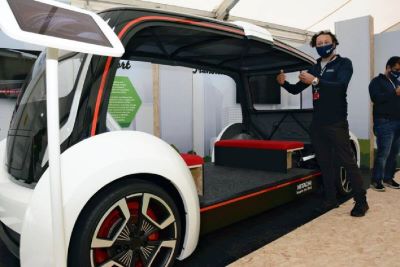Hitachi, Ltd., which became a COP26 sponsor this year in a first for the company, is exhibiting its in-wheel motor system, in which a motor is built into the wheel of an electric vehicle. As the in-wheel motor directly powers the wheels, the vehicle has better energy efficiency than conventional EVs, which use axles to transmit power to the wheels, increasing the range on a single charge by about 50%.