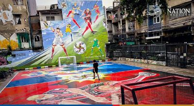 Thailand’s three musketeers of football – Chanathip Songkrasin, Theerathorn Bunmathan and Sitthichok Sopa – have been turned into manga heroes on the walls and floor of a futsal court in Chalerm La Park on Bangkok’s Phya Thai Road.