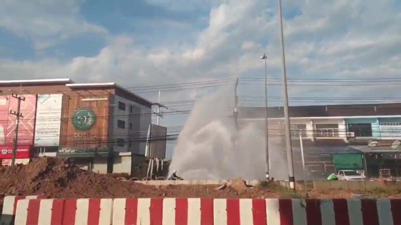 ชาวบ้าน เปิดเผยว่า เหตุระทึกดังกล่าวเกิดขึ้นเวลาประมาณ 07.30 น. โดยประมาณ จู่ๆ มีเสียงดังขึ้น แล้วก็มีน้ำกระจายพุ่งขึ้นสู่ท้องฟ้าอย่างรวดเร็วและสูงมากประมาณ 4-5 เมตร เหมือนน้ำพุเลย จนตนตกใจวิ่งหลบ ก่อนจะออกมาดู พบว่าเป็นท่อน้ำประปาแตก โดยน้ำที่พุ่งออกมา ได้ไหลทะลักเข้ามาภายในร้านของตนและร้านข้างเคียง ก่อนที่เจ้าหน้าที่ประปา จะเข้ามาซ่อมแซมดังกล่าว