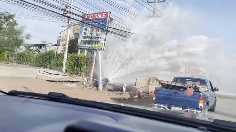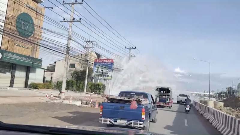 โดยข้อความระบุว่า “ท่อประปาแตก!! ถนนสุขุมวิท อ.สัตหีบ จ.ชลบุรี บริเวณใกล้ตลาดเตาถ่านทองทิพย์ โปรดใช้ความระมัดระวังในการเดินทางด้วยครับ”