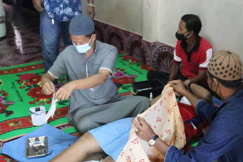 ลงพื้นที่ ทำพิธีเข้าสุนัต หรือ การขลิบหนังหุ้มปลายอวัยวะเพศชายตามหลักศาสนาอิสลาม ให้กับ นายอารีฟ มะแซ อายุ 15 ปี และด.ช. อารีฟีน มะแซ อายุ 12 ปี 2 พี่น้องฐานะ ยากจน อาศัยอยู่ในกระท่อม กว้าง 3 เมตร ยาว 6 เมตร พร้อมพ่อแม่และพี่น้อง ร่วมกัน 10 คน โดยมี นายรอมซี ดอฆอ อิหม่ามมัสยิดกลางลำใหม่ นางพารีด๊ะ ดานิง สมาชิกเทศบาลลำใหม่ นายมะนาเซะ ดอคอ อดีตกำนันต.ลำใหม่ ญาติๆและชาวบ้านในพื้นที่ ร่วมในพิธี ท่ามกลางการเฝ้าระวังและป้องกันโควิด 19 ตามมาตรการสาธารณะสุข