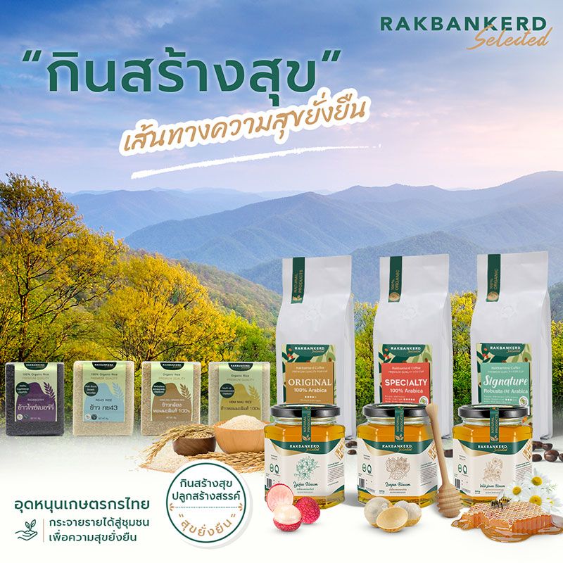 จากความตั้งใจส่งเสริมและสนับสนุนเกษตรกรไทย ให้ได้รับทั้งความรู้ข่าวสารและโอกาสทางการตลาดใหม่ๆ ไป พร้อมๆ กับการขับเคลื่อนแรงบันดาลใจ เพื่อส่งมอบผลิตภัณฑ์และบริการที่มีคุณภาพตามหลักมาตรฐานสากล พร้อมพัฒนาสังคมและสิ่งแวดล้อมให้เกิดการเติบโตอย่างยั่งยืน รักบ้านเกิด ผู้สร้างสรรค์สื่อเกษตรดิจิทัลและธุรกิจเกษตรสร้างสรรค์สู่ความยั่งยืนได้คัดสรรสินค้าอินทรีย์และออร์แกนิกเพื่อสุขภาพที่มีความหลากหลายและได้มาตรฐานจากเกษตรกรไทยมาพัฒนาและต่อยอดจนเกิดเป็นผลิตภัณฑ์ที่เป็นมิตรกับสิ่งแวดล้อม ภายใต้แบรนด์ “RAKBANKERD Selected”