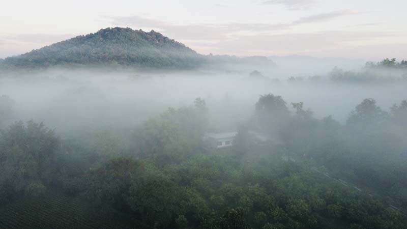 โดยภาพมุมสูงที่ถ่ายจาก “บิ๊กฟาร์มสเตย์” ชุมชนดอยพระบาท เขตเทศบาลนครเชียงราย อ.เมือง จ.เชียงราย ซึ่งจะเห็นวัดพระธาตุดอยเขาควายแก้ว ตั้งอยู่บนเขาสูฃ ที่เป็นภูเขาสูงเพียงแห่งเดียวในเขตเทศบาลนครเชียงราย มีหมอกปกคลุมที่สวยงาม รับกับแสงพระอาทิตย์แรกของวันที่สวยงามอย่างมาก ทั้งนี้ ถือว่าหมอกที่ลงหนาในเช้าวันนี้ เป็นหมอกแรกของฤดูหนาวนี้ที่สวยงาม