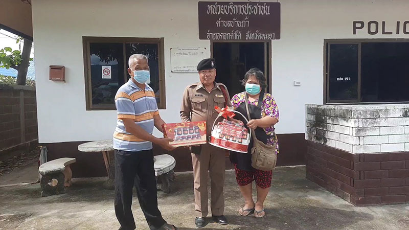 ทั้งนี้ตอนเช้า นางแก่นแก้ว มากสุก แม่ค้าผัก ได้ขับขี่รถมอเตอร์ไซค์ออกจากบ้านในซอยถนนหน้าตู้ยาม ได้ทำกระเป๋าสะพายข้างในมีเงินและเอกสาร ใส่ไว้ตะกร้าหน้ารถแล้วตกหล่นบนถนน โดยมี ร.ต.ต สุมิตร นักเทศ รอง (สวป) สถานีตำรวจภูธรอำเภอดอกคำใต้ จ.พะเยา หน.ประจำตู้ยามตำบลบ้านถ้ำ ได้เก็บกระเป๋าไว้ได้ ต่อมาได้มีเจ้าของมาขอรับคืนพร้อมนำของขวัญและกระเช้ามอบให้เป็นน้ำใจ จนเป็นที่ชื่นชมของชาวบ้านว่าตำรวจคนดี ขวัญใจชาวบ้านถ้ำ