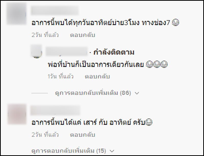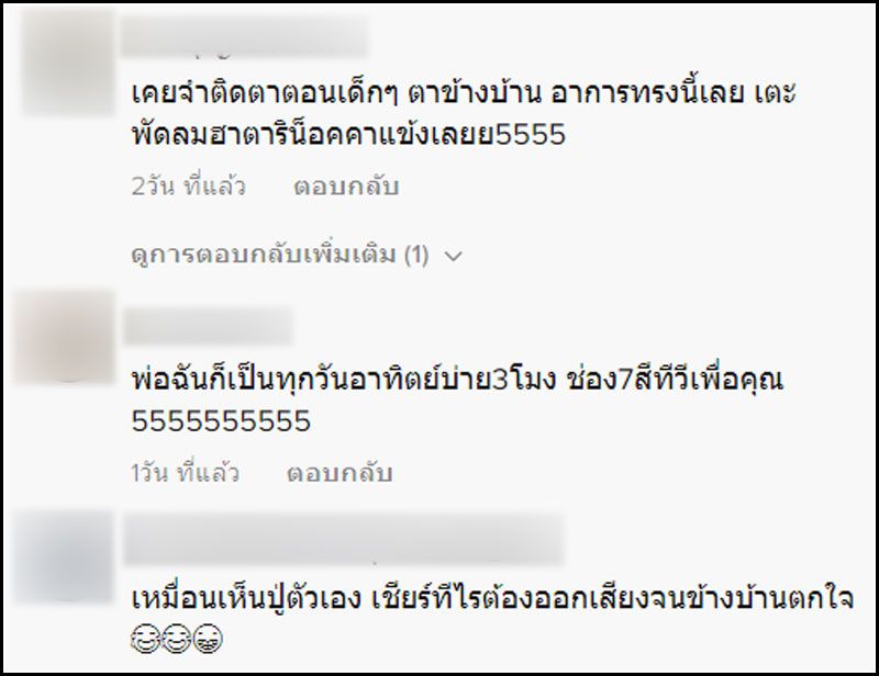 คลิปนี้มีผู้เข้าชมกว่า 2.5 ล้าน ลูกชายระบุแคปชั่นว่า “อาการหลังฉีด pfizer บูทเตอร์เข็ม 3 ” แต่ชาวเน็ตต่างเข้าไปแสดงความคิดเห็นจำนวนมากว่า อาการแบบนี้ไม่ต้องฉีดวัคซีนก็เป็นกันทุกบ้าน “พ่อฉันก็เป็น , ปู่ผมก็เป็น” โดยเฉพาะวันอาทิตย์ ใครก็ห้ามแย่งทีวีเด็ดขาด ฮ่าๆ
