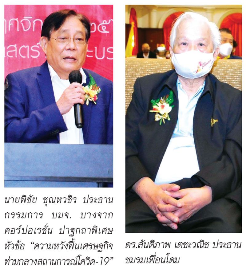 ต่อด้วย ปาฐกถาพิเศษ หัวข้อ “ความหวังฟื้นเศรษฐกิจท่ามกลางสถานการณ์โควิด-19” ได้รับเกียรติจาก นายพิชัย ชุณหวชิร ประธานกรรมการ บริษัท บางจาก คอร์ปอเรชั่น จำกัด (มหาชน) เป็นผู้กล่าวปาฐกถา ซึ่งมีใจความสำคัญว่า เราต้องมีความหวังในทุกปัญหา รวมถึงความหวังในการฟื้นฟูเศรษฐกิจท่ามกลางสถานการณ์การระบาดของไวรัสโควิด-19 ก็ด้วยเช่นกัน