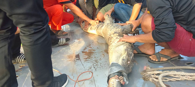 จากนั้นได้แจ้งให้ พ.ต.ท.หญิง รักตาภา วงษ์ยอด รองผู้กำกับการฝ่ายอำนวยการ กองตรวจราชการ 5 สำนักงานจเรตำรวจทราบ หลังรับแจ้ง พ.ต.ท.หญิง รักตาภา จึงเดินทางไปตรวจสอบ พร้อมประสานขอรับการสนับสนุนจากประมงจังหวัดกาญจนบุรี และทีมเจ้าหน้าที่กลุ่มอสรพิษวิทยา อาสากู้ภัยฯ เข้าช่วยเหลือ