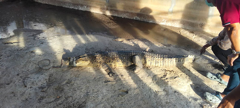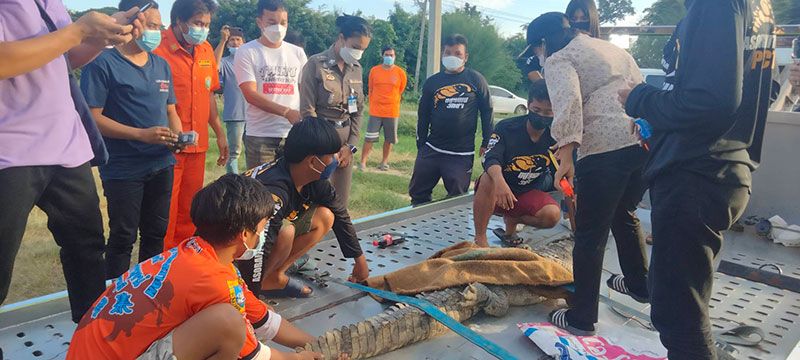 10 พฤศจิกายน 2564 ผู้สื่อข่าวรายงานว่า เมื่อเวลา 16.00 น. ที่ผ่านมา ชาวบ้านหมู่ 8 ตำบลเขาสามสิบหาบ อำเภอท่ามะกา จังหวัดกาญจนบุรี ได้พบจระเข้ขนาดใหญ่ขึ้นมานอนอาบแดด บริเวณคลองซอย จึงพยายามช่วยกันใช้เชือกจับมัดเอาไว้ ก่อนนำไปผูกไว้กับต้นมะพร้าวในสวนของชาวบ้าน พบเป็นจระเข้ เพศเมีย มีความยาวประมาณ 2.40 เมตร