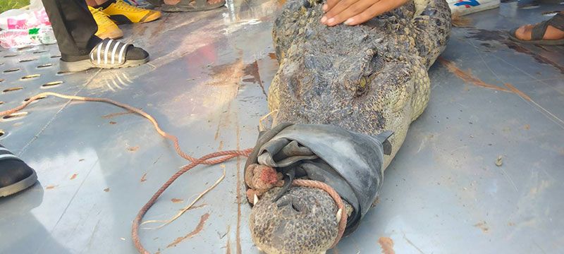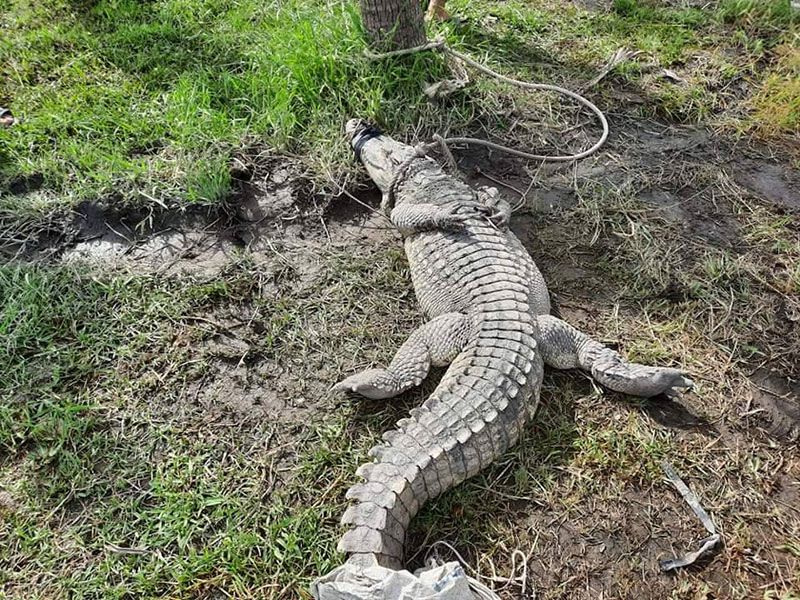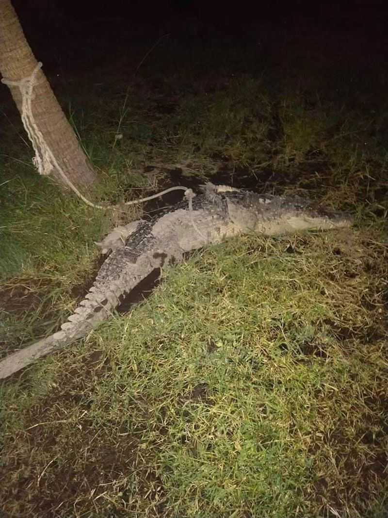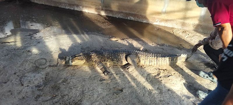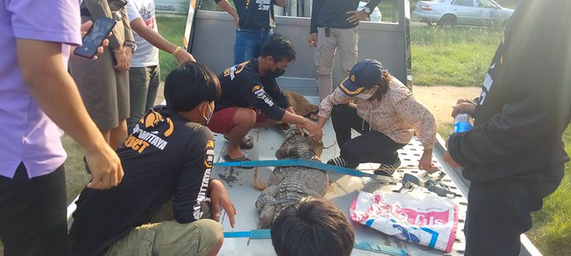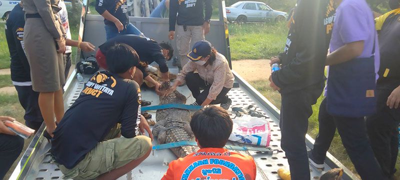 ทั้งนี้เบื้องต้นคาดว่า จระเข้ที่พบน่าจะหลุดออกมาจากฟาร์มเลี้ยงจระเข้ที่อยู่ใกล้เคียงจุดที่พบจระเข้ตัวดังกล่าว ซึ่งที่ผ่านมาเคยมีเหตุการณ์จระเข้หลุดในลักษณะเช่นนี้มาแล้ว. 012