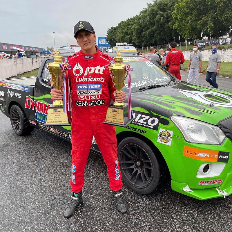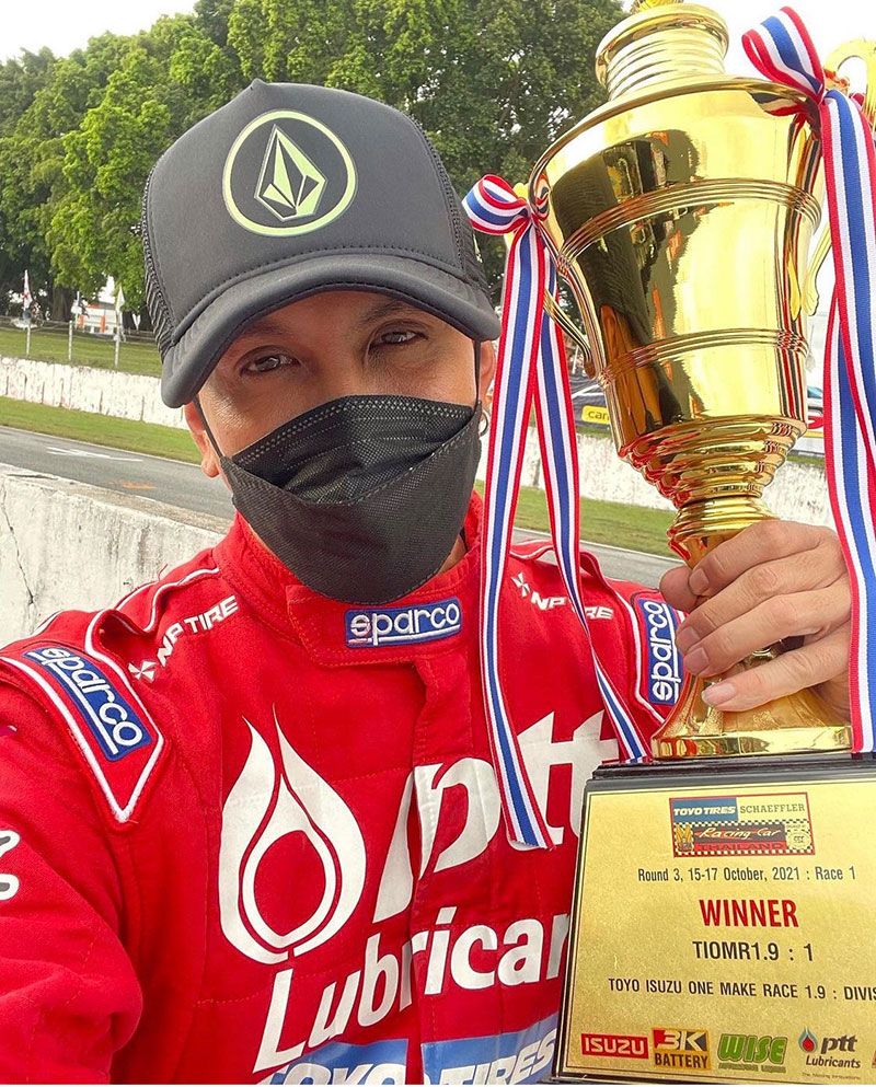 จริงๆ อาชีพหลักเราเป็นนักแข่งรถอยู่แล้ว เราทำมาน่าจะ 24 ปี เป็นสายงานตรงสำหรับผมแล้วมีความเชื่อว่าทุกๆ คนถูกสร้างมาด้วยวาระที่แตกต่างกัน ผมเองก็เป็นนักแข่งอาชีพมันถูกกำหนดมาให้เป็นแบบนี้ตอนแรกเป็นความชอบแต่ตอนหลังมันเป็นอาชีพครับ เราก็ไม่ได้ทำเพื่อความสนุกแล้ว เราต้องรักษาสถิติตัวเองให้สูงที่สุดทุกปีมันก็จะมีผลในการมีผู้สนับสนุนเพิ่มมากขึ้น เราสามารถออกไปแข่งต่างประเทศได้ ยุโรปได้ รางวัลล่าสุดที่ได้เป็นแชมป์แข่งเรซซิ่งคาร์ไทยแลนด์ รุ่นกระบะวันเมคเรซ รางวัลนี้เป็นรางวัลที่สามของปี ก็ได้แชมป์สองวันเลย ค่อนข้างยากวันหนึ่ง แข่งสนามแห้ง วันหนึ่งแข่งสนามที่ฝนตก ก็ดีใจที่คว้ารางวัลแชมป์มาได้ทั้งสองรางวัลครับ