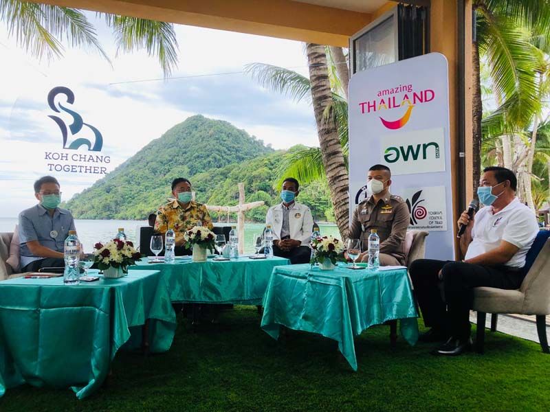 หลังจากจบพิธีการแล้ว ได้ทำการแถลงข่าวกับสื่อมวลชนที่โรงแรมสยามโรยัลวิวล์ เพื่อสร้างความเข้าใจให้กับนักท่องเที่ยวทั้งไทยและต่างประเทศในการเดินทางเข้ามายังอำเภอเกาะช้าง ทั้งนี้ ได้กล่าวย้ำถึงการทำมาตรฐานความปลอดภัยด้านสุขอนามัยหรือ SHA และ SHA +ให้กับสถานประกอบการในจังหวัดตราดให้มากที่สุด ส่วนที่ดำเนินการไม่ได้ก็จะใช้หลักเกณฑ์แบบTHAI STOP COVID เพื่อให้ผู้ประกอบการฐานรากเข้าถึงได้