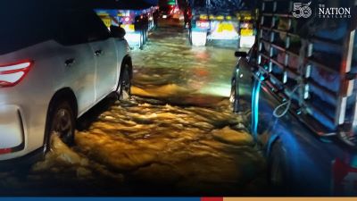 Eight trains have been cancelled due to flooding. Heavy rain has also inundated Phetchkasem Road or Highway 4, another major route connecting Bangkok to the South.