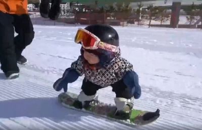 A video of a baby girl sliding down the hill on a snowboard went viral on the internet recently, attracting a lot of attention.