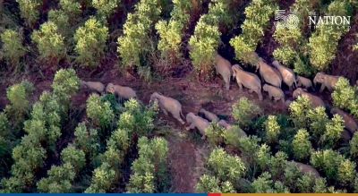 More than 70 elephants were spotted crossing over to Prachinburi from the Khao Ang Rue Nai Wildlife Preserve on Wednesday, while rangers are doing their best to lead the animals back to the sanctuary.