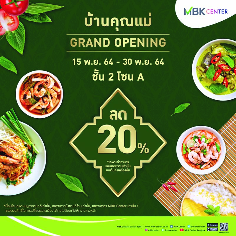 “บ้านคุณแม่” และ “เฮือนอีแม่” ชวนชิมอาหารไทยและอาหารอีสานรสแซ่บ พร้อมส่วนลด 20% ฉลองเปิดร้าน ถึง 30 พ.ย.ที่ ศูนย์การค้าเอ็ม บี เค เซ็นเตอร์ โทร.02-8539000