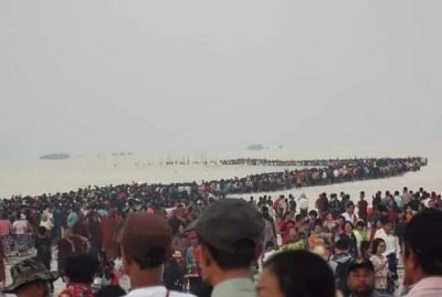 “Since early morning, pilgrims showed up to go to the pagoda. At that time, the tide was still in on the path to the pagoda. Those in front happened to be pushed by others in the back as they tried to get on the boats. Then, a crush occurred and waves formed. We have learnt that many were washed away,” said an official from Mon Myat Setana Rescue.