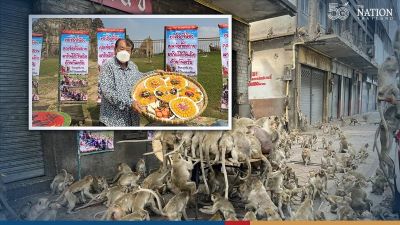 Yongyuth Kijwattananusorn, the hotel’s president, said thousands of monkeys living near the Phra Prang Sam Yot temple and San Phra Kan shrine showed up to enjoy the spread, especially durian which appeared to be their favourite.