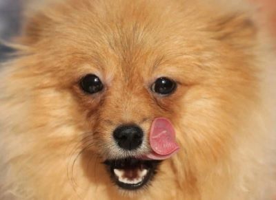 A pomeranian gets its hair trimmed during a dog show in Amritsar of India