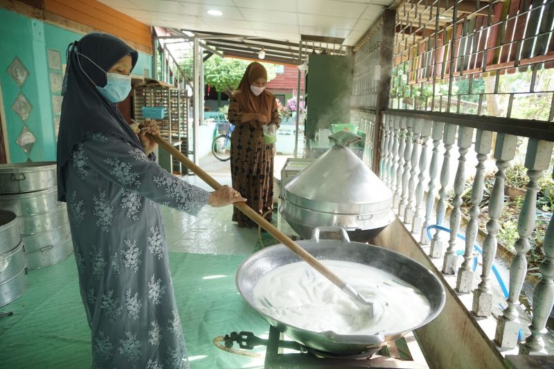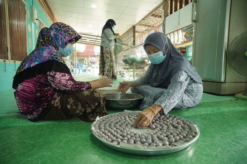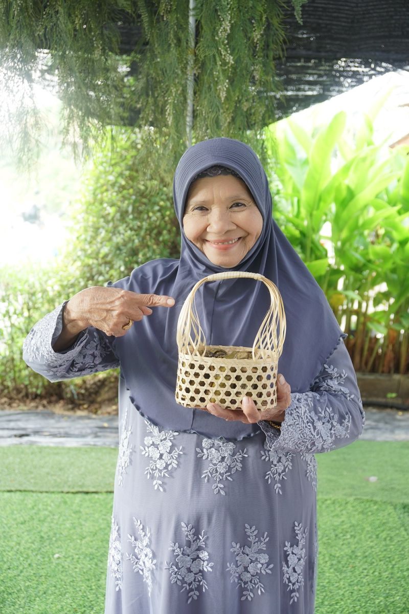 “ยายทำขนมมาตั้งแต่อายุประมาณ 14 – 15 และยังอยู่โรงเรียน กลับมาจากโรงเรียนก็มาช่วยแม่ทำ ก็ทำมาประมาณ 50 กว่าปี เมื่อก่อนก็ขายตามคลอง เข้าบ้านโน้น เข้าบ้านนี้ แต่พอหน้าแล้งก็ทำขนมไปส่งตามร้านพี่น้องที่ขายของอยู่ เราไม่ได้ทำเยอะ แต่ตอนนี้จะเยอะมาก ถามว่ายายทำอะไรเก่ง ก็เก่งไปหมดทุกขนมเลยดีกว่า เพราะยายก็ทำได้หมดทุกอย่าง ก็ไม่รู้จะเอาขนมอะไรนะ เอาว่าถ้าลูกค้ากินติดใจ ถูกใจ ก็ขอให้ลูกค้าได้กินกันไปเรื่อยๆ แต่ตอนนี้ยายก็แก่แล้ว อยากจะถ่ายทอดอาชีพให้หลานๆ เหลนๆ เขาไป แต่ว่าการทำขนมของยายก็ต้องให้ได้รสชาติของยายที่ทำมา เพื่อจะต่อยอดให้ขายดิบขายดี ลูกค้ากินแล้วเขาจะได้ติดใจ ยายก็จะไปไม่ค่อยไหว แต่พวกหลานๆ ก็บอกว่ายายสู้ๆ เราก็สู้แต่เราก็ยังดูแลอยู่ อย่าทำแบบว่านึกจะทำก็ทำเป็นขนมน่ะมันไม่ได้ มันต้องได้รสชาติของมัน ให้รสชาติกลมกล่อม ให้อร่อย ลูกค้าถึงจะติดใจ เมื่อตัวเรากินเองว่าอร่อย คนอื่นก็อร่อย แต่ถ้าเรากินไม่อร่อย คนอื่นก็บอกว่าไม่อร่อยเหมือนกัน”