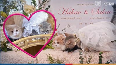 The bewitching ceremony was held in Phitsanulok after the (cat) “bride” and “groom” met each other at their regular spa and the owners felt it befitting to make it official.