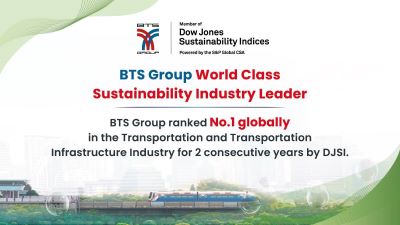 BTS Group has been selected as DJSI member for the fourth consecutive year, ranking first globally in the Transportation and Transportation Infrastructure Industry for two consecutive years, as well as the inclusion in the 2021 THSI list, containing listed companies that operate sustainable businesses with outstanding efficiency in all dimensions.