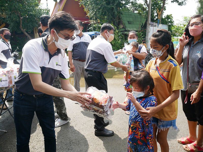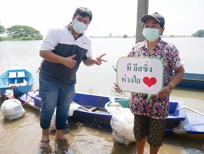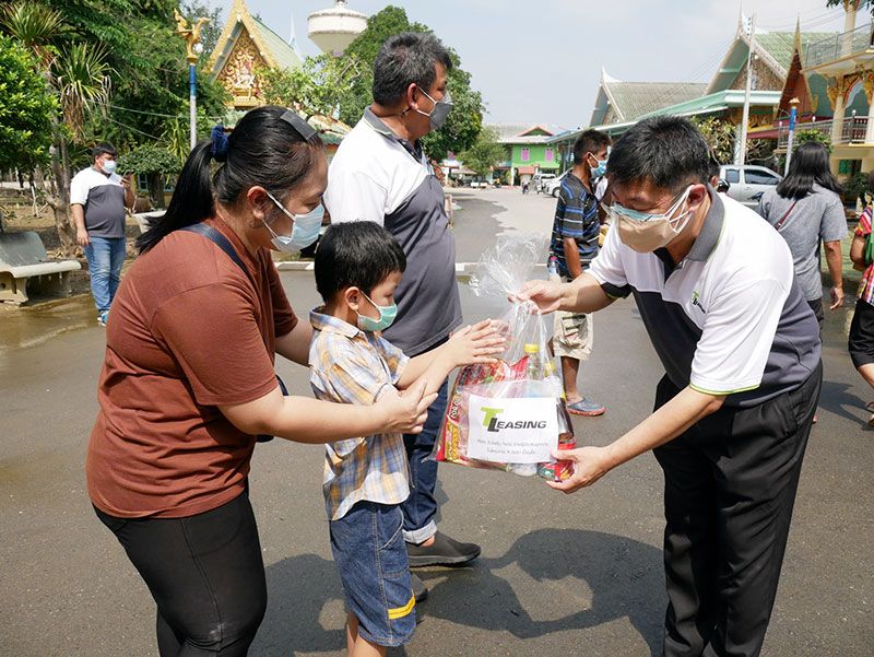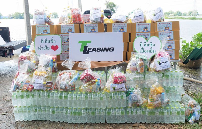 โดยล่าสุด มงคล เพียรพิทักษ์กิจ กรรมการผู้จัดการ บริษัท ที ลีสซิ่ง จำกัดนำคณะผู้บริหารและพนักงานจิตอาสา ที ลีสซิ่ง ร่วมกันแพ็กถุงยังชีพกว่า 200 ชุด และลำเลียงน้ำดื่ม 1,000 ขวด ขับเคลื่อนโครงการ“ที ลีสซิ่ง เปื้อนยิ้ม” ลงพื้นที่ วัดดงตาล ต.บางพลับ อ.สองพี่น้อง จ.สุพรรณบุรี มอบถุงยังชีพช่วยเหลือชาวบ้านที่ประสบภัยน้ำท่วมในพื้นที่ จำนวน 75 ครัวเรือน โดยมีชาวบ้านเดินทางมารับของกิน ของใช้ อาหารสัตว์เลี้ยงและยาสามัญประจำบ้าน พร้อมกำลังใจจากเหล่าจิตอาสา อบอวลไปด้วยรอยยิ้มและความห่วงใย จากนั้นเหล่าผู้บริหารและจิตอาสาได้เดินทางต่อไปที่ อ.ผักไห่ จ.พระนครศรีอยุธยาเพื่อมอบถุงยังชีพช่วยเหลือชาวบ้านที่ประสบภัยน้ำท่วมในพื้นที่อีกกว่า 50 ครัวเรือน โดยทุกคนได้ช่วยกันลำเลียงถุงยังชีพและน้ำดื่มลงเรือชาวบ้านที่มารอรับ และเรือช่วยเหลือเพื่อกระจายสิ่งของจำเป็นให้ทั่วถึงผู้ประสบภัยมากที่สุด ส่งต่อกำลังใจให้พร้อมก้าวต่อไปอย่างแข็งแรงปลอดภัย