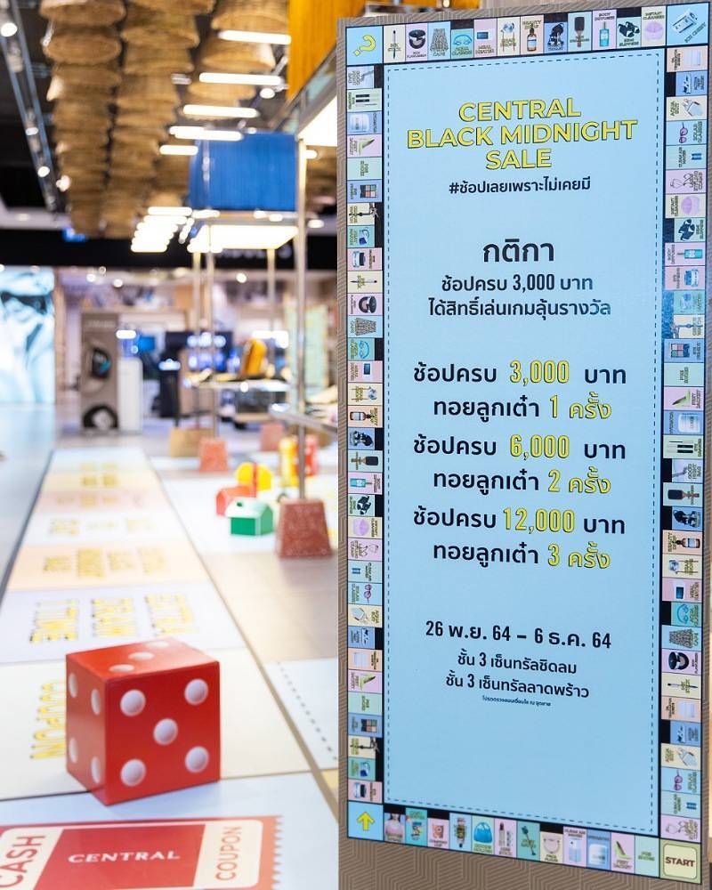 ช้อปเลยเพราะไม่เคยมี”ที่จะมาสร้างสีสันให้ทุกคนอมยิ้ม และได้สนุกไปกับการช้อปปิ้ง ปลุก Emotionของนักช้อป ด้วยการครีเอทชื่อเรียกไอเท็มที่อยากได้ ด้วยชื่อใหม่ มีแล้วจึงมีได้อีก ไม่มีซ้ำ ช้อปแล้วไม่รู้สึกผิด ซึ่งสามารถรับชมได้ทาง YouTube :https://www.youtube.com/watch?v=yKVCLhwQwF4 นอกจากนี้ยังใช้ Influencer Marketing มาร่วมสนุก และสร้างสีสันให้กับแคมเปญในครั้งนี้อีกด้วย ไม่แต่เพียงเท่านี้ทางห้างฯ ยังยกระดับประสบการณ์ช้อปปิ้งของลูกค้า อำนวยความสะดวกให้ทุกท่านด้วยการเพิ่มจุดจำหน่ายสินค้าที่ตกแต่งและจำลองให้เป็น Midnight Marketรวบรวมไอเทมสุดฮอตภายในห้างมาให้ลูกค้าได้เลือกช้อปฯ กันอย่างจุใจและจัดกิจกรรมไฮไลต์“Guilty Free Festival”ที่เนรมิตกระดานเกมเศรษฐีขนาดยักษ์ให้นักช้อปได้เพลิดเพลิน พร้อมโปรโมชั่นจัดเต็ม เอาใจขาช้อป อีกมากมาย ตั้งแต่วันที่ 26 พฤศจิกายน – 6 ธันวาคม 2564 ที่ห้างเซ็นทรัลทุกสาขา และทุกช่องทางออนไลน์ และยังมีกิจกรรมพิเศษฉลองเปิดแคมเปญCentral Black Midnight Saleที่จะมาสร้างสีสันให้กับแคมเปญในครั้งนี้ด้วยโอม-ภวัต จิตต์สว่างดี และ นนน-กรภัทร์ เกิดพันธุ์ นักแสดงหนุ่มชื่อดังจากซีรี่ส์ “แค่เพื่อนครับเพื่อน BAD BUDDY SERIES”ที่จะมาร่วมไลฟ์ทำกิจกรรมกับแฟนคลับ พร้อมแจกของรางวัลพร้อมลายเซ็น ในวันศุกร์ที่ 26 พฤศจิกายน 2564 เวลา 19.00 น. เป็นต้นไป ทาง FACEBOOK LIVE – CENTRAL DEPARTMENT STORE อีกด้วยค่ะ” รวิศรากล่าว