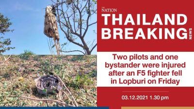 Rescue workers rushed to Lopburi’s Chai Badan district when they heard about an F5 fighter plane falling from the sky.