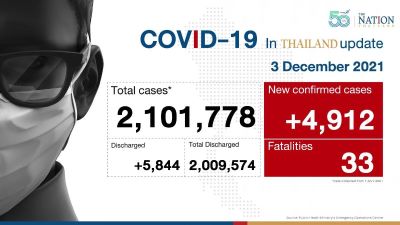 Thailand ranks 24th in the global list of most cases, which is topped by the US with 49.72 million, followed by India with 34.61 million, Brazil with 22.12 million, the UK with 10.33 million and Russia with 9.7 million.
