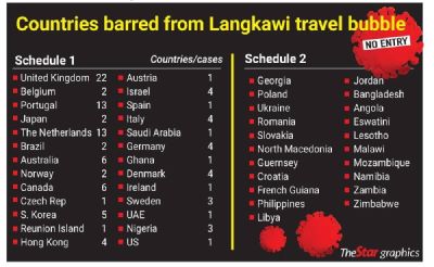 PETALING JAYA: Travellers from a number of countries are temporarily barred from taking part in the Langkawi international travel bubble programme following the detection of cases involving the Omicron variant (see graphic).