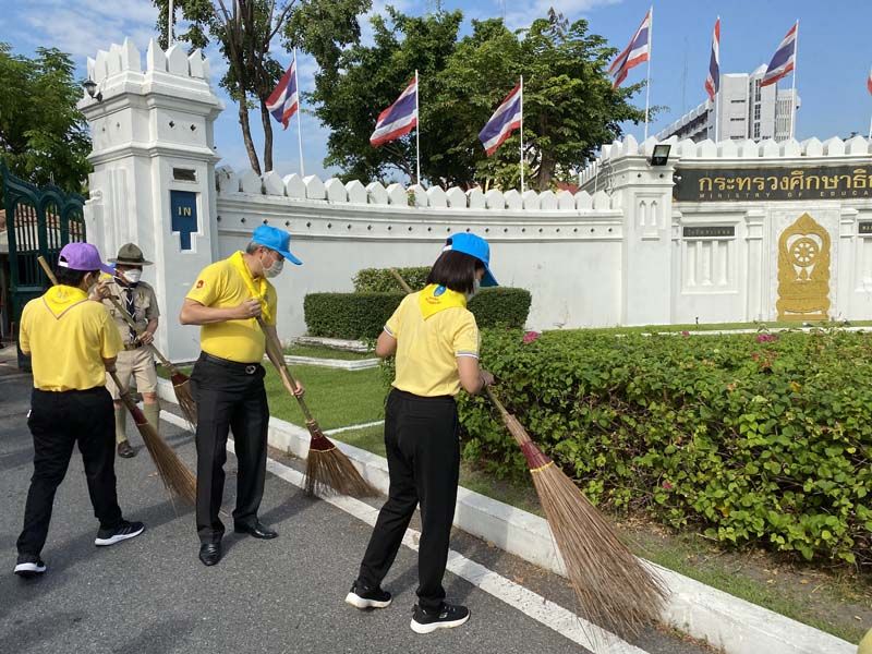 ต่อจากนั้น น.ส.ตรีนุช และคุณหญิงกัลยา มอบอุปกรณ์บำเพ็ญประโยชน์ ให้แก่ปลัดศธ. และผู้บริหารหน่วยงานในสังกัดศธ. เพื่อนำไปมอบให้ข้าราชการ บุคลากร ศธ. ลูกเสือ เนตรนารี ยุวกาชาด ผู้บำเพ็ญประโยชน์ นักศึกษาวิชาทหาร และจิตอาสา นอกจากนี้ น.ส.ตรีนุช และคุณหญิงกัลยา คณะผู้บริหาร ข้าราชการ บุคลากร ศธ. ลูกเสือ เนตรนารี ยุวกาชาด ผู้บำเพ็ญประโยชน์ นักศึกษาวิชาทหาร และจิตอาสา ได้ออกเดินทางไปปฏิบัติกิจกรรมอาสาบำเพ็ญประโยชน์ในกระทรวงศึกษาธิการและโดยรอบ วัดอินทรวิหาร วัดใหม่อมตรส วัดชนะสงคราม