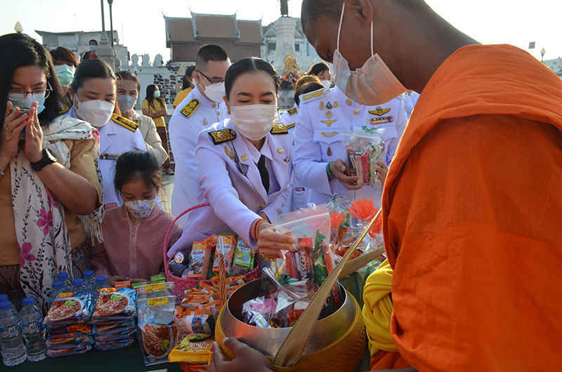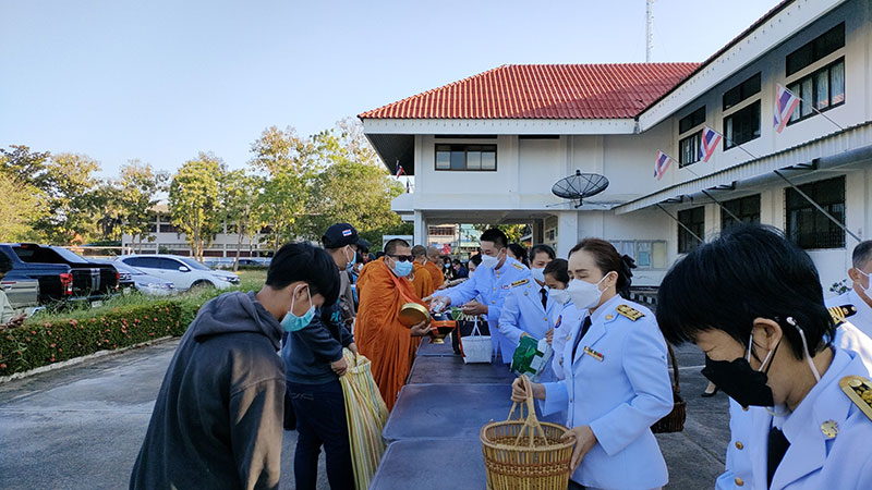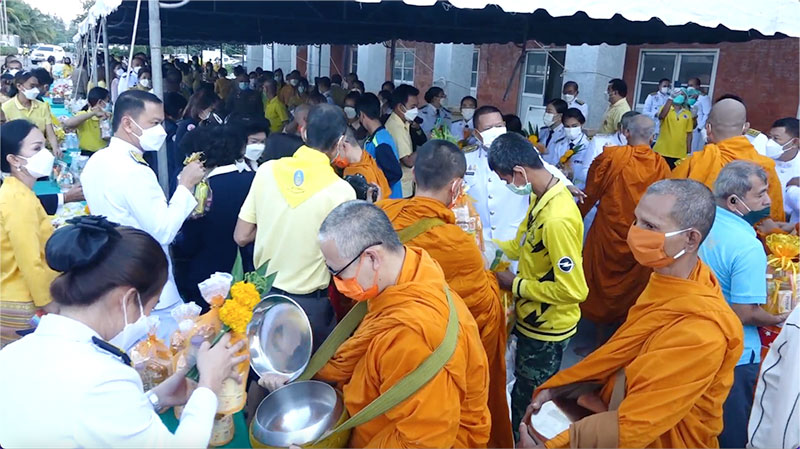 จากนั้นได้ร่วมกันนำข้าวสารอาหารแห้งใส่บาตรพระภิกษุสงฆ์จำนวน 89 รูป ถวายเป็นพระราชกุศล เนื่องในวันคล้ายวันพระบรมราชสมภพ พระบาทสมเด็จพระบรมชนกาธิเบศร มหาภูมิพลอดุลยเดชมหาราช บรมนาถบพิตรวันชาติ และวันพ่อแห่งชาติ 5 ธันวาคม 2564